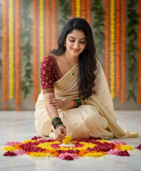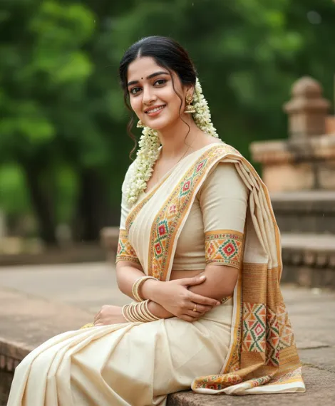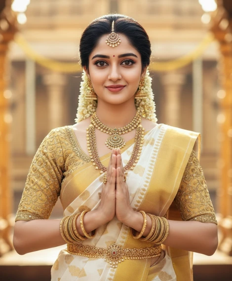 Capture the Essence of Kerala-Style Golden White Saree Looks with 7 Trendy Gemini AI Prompts
